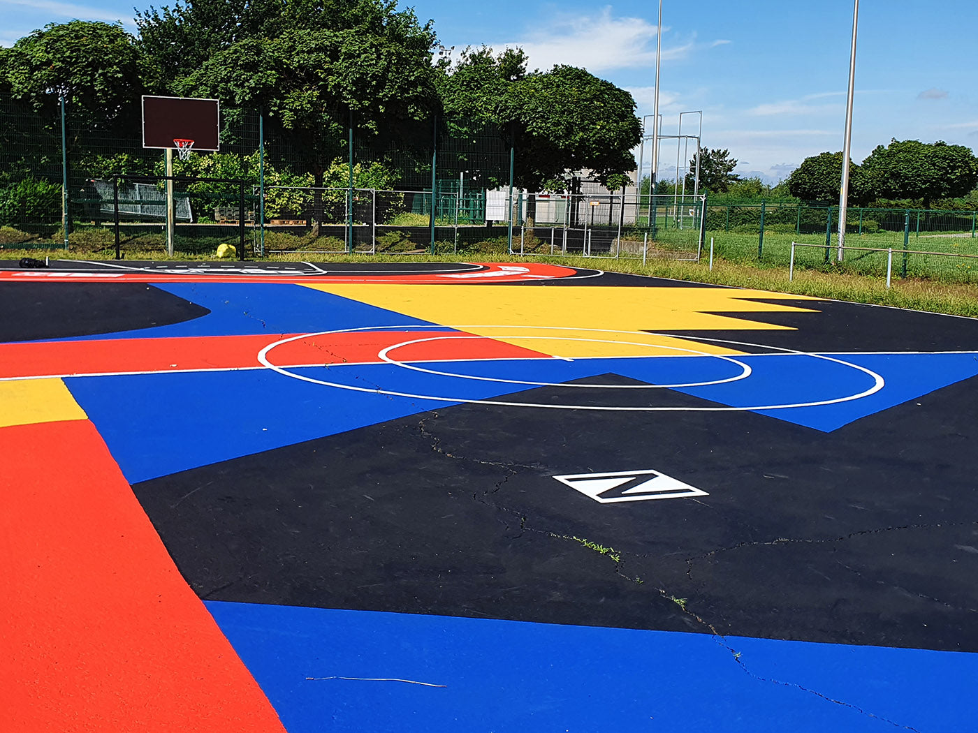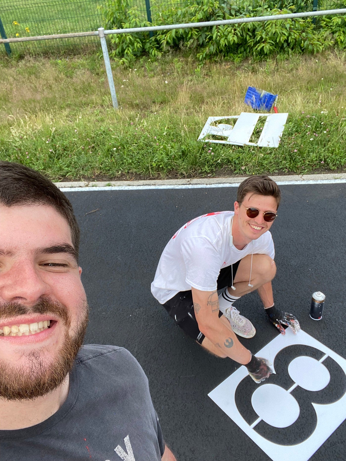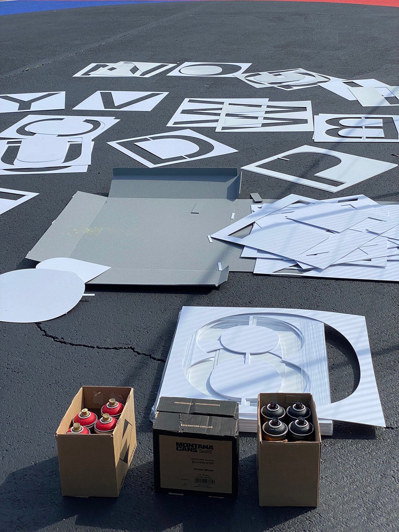 We were called by the city of Genk and C-Mine to paint an entire basketball / football field as part of the SHOUT exhibition (opening 3rd of July) among international artists such as Eike König, James Joyce, Anthony Burrill, Morag Myerscough and well, me. Without a doubt it was the largest mural We've ever painted (20x40m, Marco is the white spot close to the N in the first pic) and without Alley Studio guys and the neighborhood kids help, this project would never have been possible. We love seeing these young fellas already enjoying their new court!